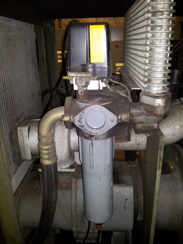 我們需要從壓縮空氣中除去水,以防止損壞我們的壓縮空氣。我們通過簡單的冷凝水收集器和冷凝水排放來實現(xiàn)這一點。