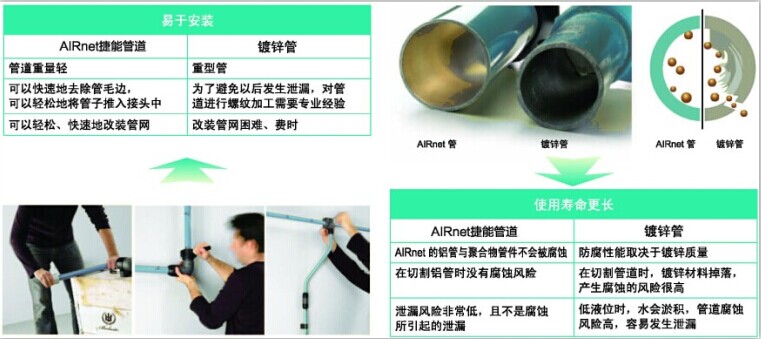 壓縮空氣管道在生產(chǎn)過程中扮演著“血管系統(tǒng)”的重要角色,不合格的管道由于泄露、壓降、腐蝕將導致運行成本升高,甚至損壞用氣設備及產(chǎn)品。AIRnet捷能管道系統(tǒng)能以極低的運行成本帶來優(yōu)質(zhì)空氣,保證您的生產(chǎn)需求。